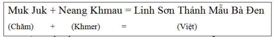 Để lý giải nguyên nhân này, theo tác giả, chúng ta cần truy ngược lại chức năng của các vị Mẫu ở Nam Bộ. Không giống như tín ngưỡng thờ Mẫu Tam phủ, Tứ phủ ở Bắc Bộ đó là mỗi vị Mẫu phụ trách những “phủ” khác nhau; tín ngưỡng thờ Mẫu ở Nam Bộ về bản chất, như tác giả đã đề cập chính là có sự tương đồng với Mẫu Thoải hoặc Mẫu Địa trong tín ngưỡng Tam phủ, Tứ phủ. Với điều kiện sông nước nhiều, yếu tố “nước” rất quan trọng trong việc phát triển đời sống vật chất. Do đó, việc phụng thờ thêm vị Nữ thần Mé Sar là không cần thiết. Rất nhiều nhà nghiên cứu đã nhận định, hình tượng Linh Sơn Thánh Mẫu Bà Đen chính là kết quả của sự hỗn dung văn hóa Chăm – Khmer – Việt. Cụ thể hơn, trong văn hóa Chăm, vị Nữ thần xứ sở của họ chính là Po Inư Nagar còn được biết đến với tục danh là Bà Đen (Muk Juk). Chính hình tượng này đã kết hợp với vị Nữ thần Neang Khmau của người Khmer đã tạo nên hình tượng Linh Sơn Thánh Mẫu ngày nay. Sự hỗn dung của các dạng thức thờ Mẫu của ba tộc người Chăm – Khmer và Việt được tác giả tối giản hóa theo công thức bên dưới: