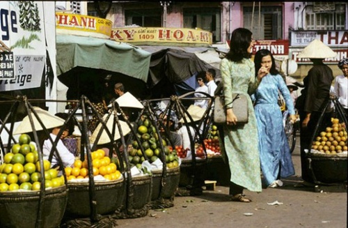 Một trong số những thú vui của phụ nữ Sài Gòn thời ấy là... ăn chợ. Trong lúc đi dạo phố phường hay xách làn đi mua thức ăn, các cô gái thường ngồi nghỉ chân ở một gánh hàng rong, quán ăn trong chợ để lót dạ bằng bát bún riêu hay cháo vịt.