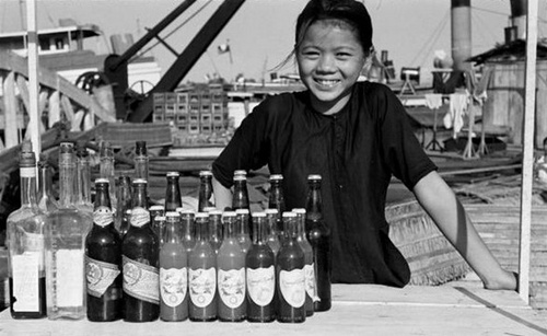 Nụ cười hồn nhiên của cô bé bán nước bên bờ kênh.