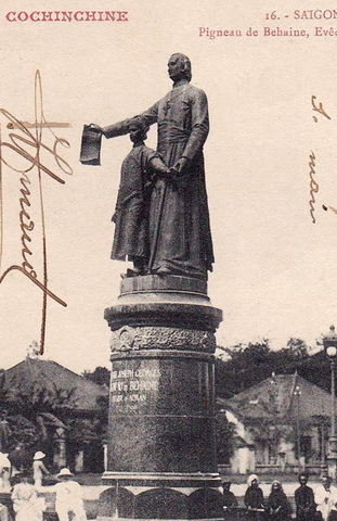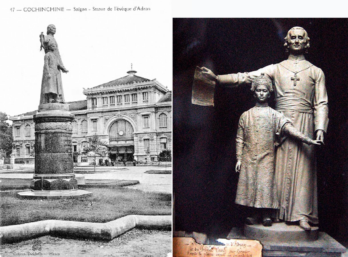 Bức tượng giám mục Bá Đa Lộc và hoàng tử Cảnh. Ảnh: Internet.
