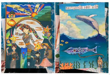 Hai bìa sách “Hoa văn trên vải dân tộc HMông” và “Hai vạn dặm dưới biển”