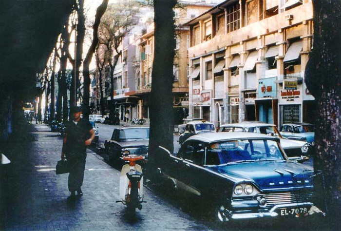 Cách đây gần 50 năm, đường phố của Sài Gòn lúc bấy giờ đã được quy hoạch gọn gàng, đẹp mắt với những ngôi nhà cao tầng, cây xanh thẳng hàng, thẳng lối. Xe hơi đậu khắp nơi ở hai bên đường. Nếu không ghi chú đây là Sài Gòn, chắc nhiều người Việt có thể lầm tưởng ảnh được chụp ở một quốc gia nào đó tại phương Tây.