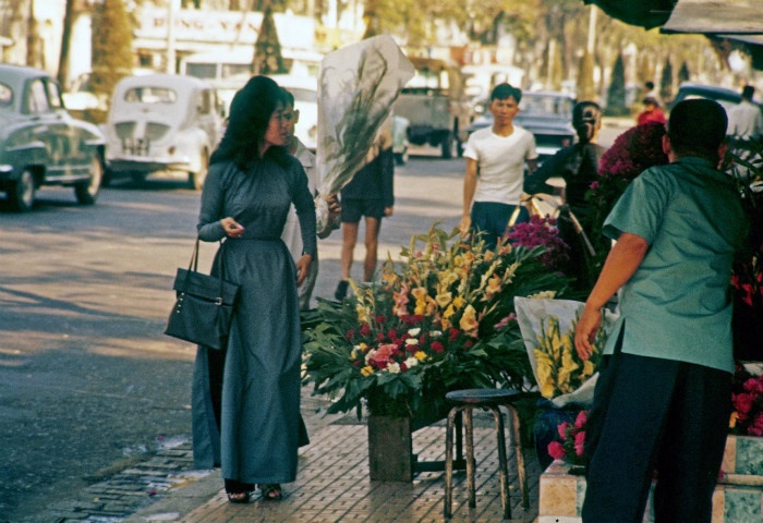 Cô gái lựa hoa ở đường Nguyễn Huệ, ảnh chụp năm 1963 - Ảnh: Tumblr Amazingvietnam