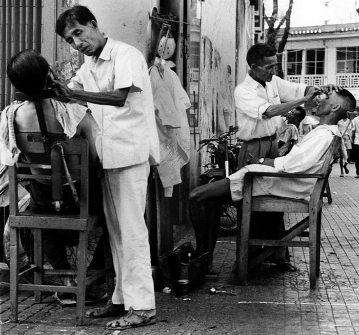 Sài Gòn 1966 vẫn là có những hình ảnh cắt tóc vỉa hè giản dị - Ảnh: Tumblr Amazingvietnam