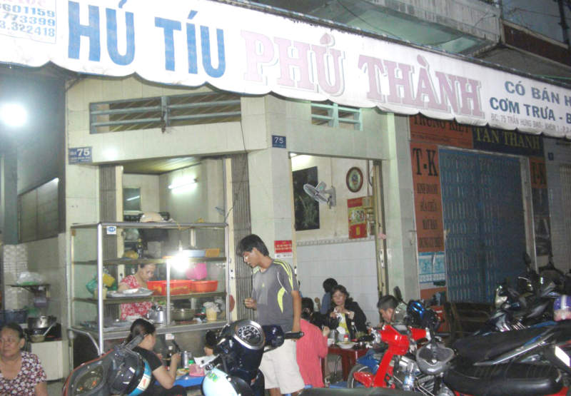Tiệm hủ tiếu Phú Thành chúng tôi tới ở số 75 đường Trần Hưng Đạo, gần khu vực chợ Sa Đéc. Tiệm hủ tiếu Phú Thành là một ngôi nhà cũ kỹ, rộng rãi, bàn ghế nhựa thấp, phong cách bình dân như các tiệm hủ tiếu khác tại thành phố Sa Đéc.