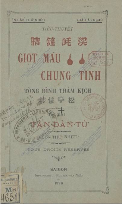Trong quá trình tra cứu tìm tòi trên mạng, tôi may mắn kiếm được bản in gốc của tiểu thuyết “Giọt máu chung tình – Tòng đình thảm kịch” xuất bản năm 1926 trong bộ sưu tập Sách Đông Dương của Thư viện Quốc gia Việt Nam. Tôi mạn phép chia sẻ qua liên kết dưới đây để các bạn thưởng thức.