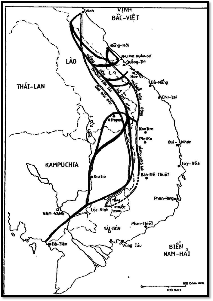 Đường mòn HCM (Trường Sơn Tây) và Hành Lang 613 (Trường Sơn Đông). Nguồn: Nguyễn Đức Phương